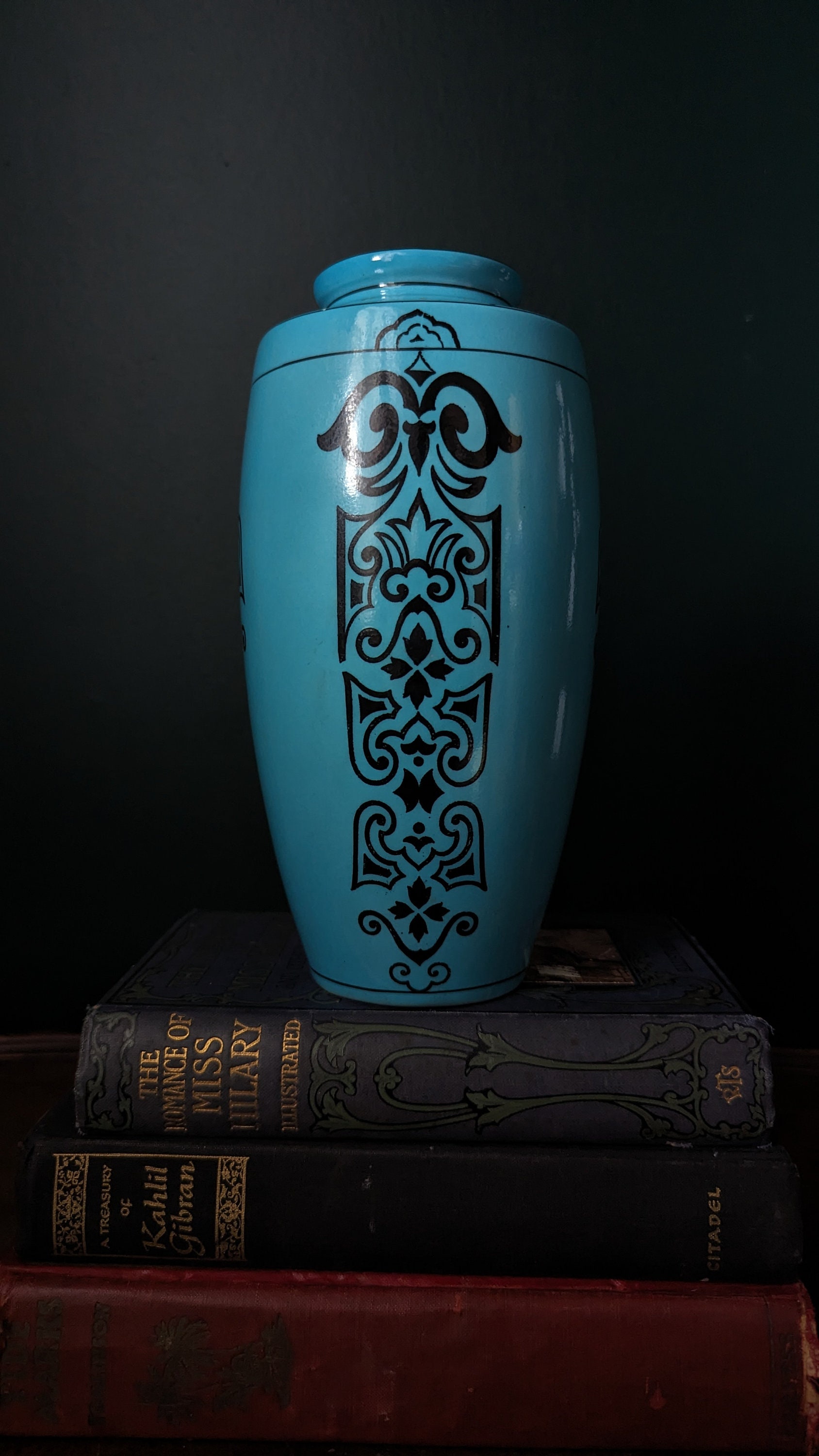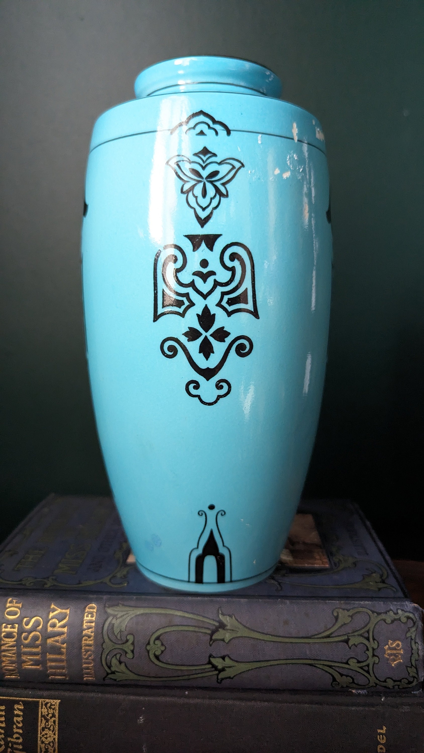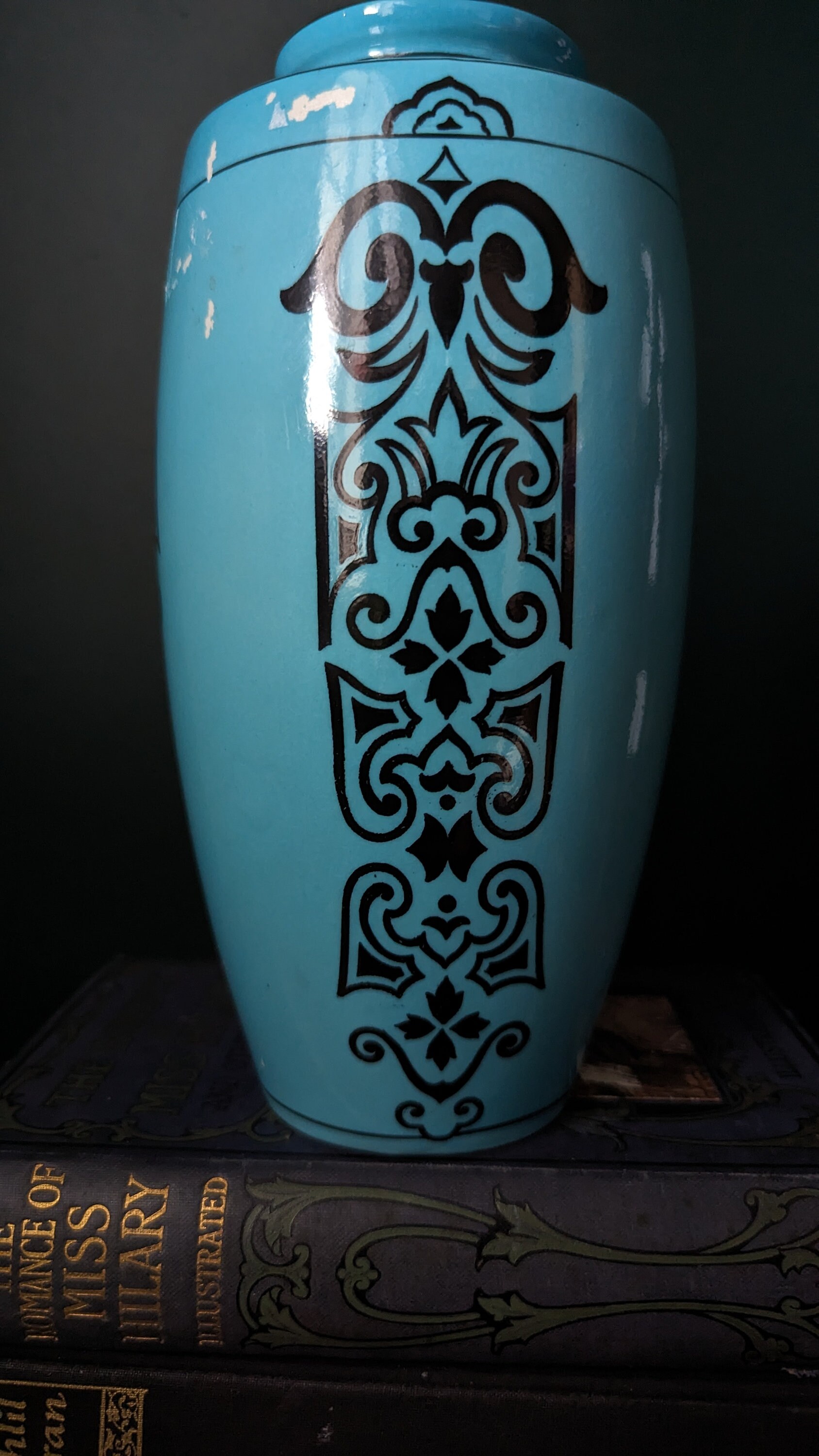 Vintage Blue Art Deco Falcon Ware J.M.H and Son Vase Origin: England