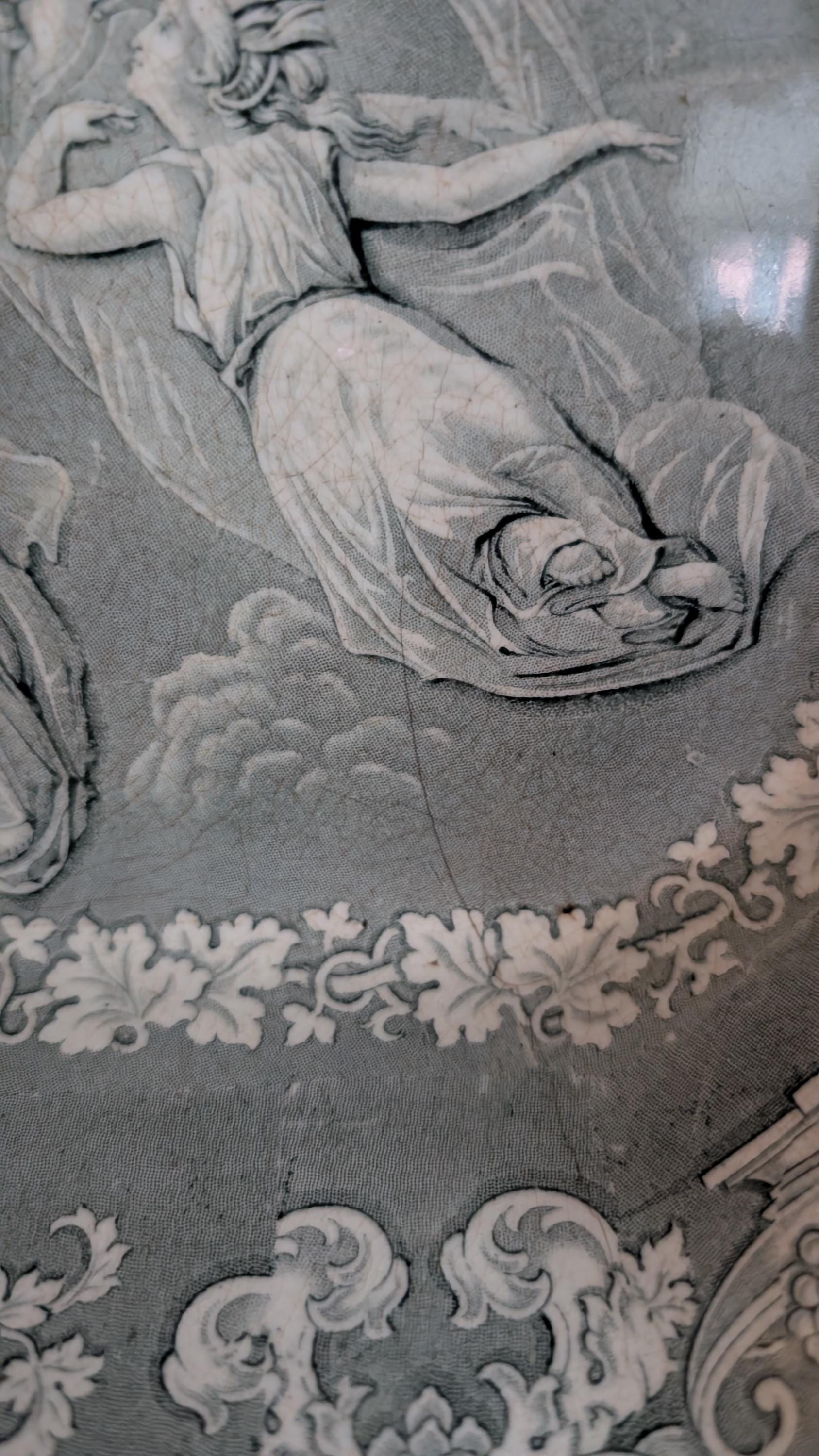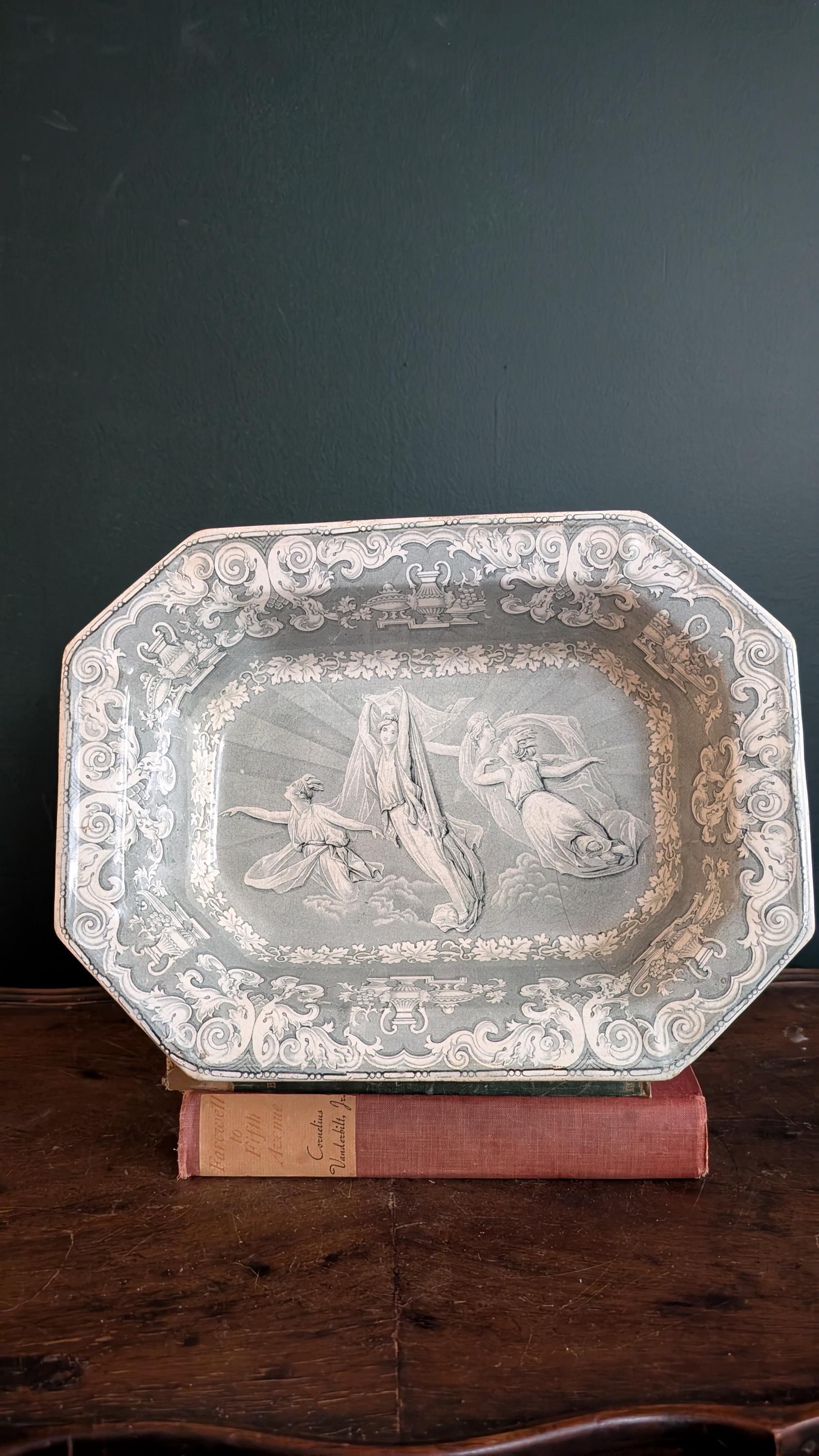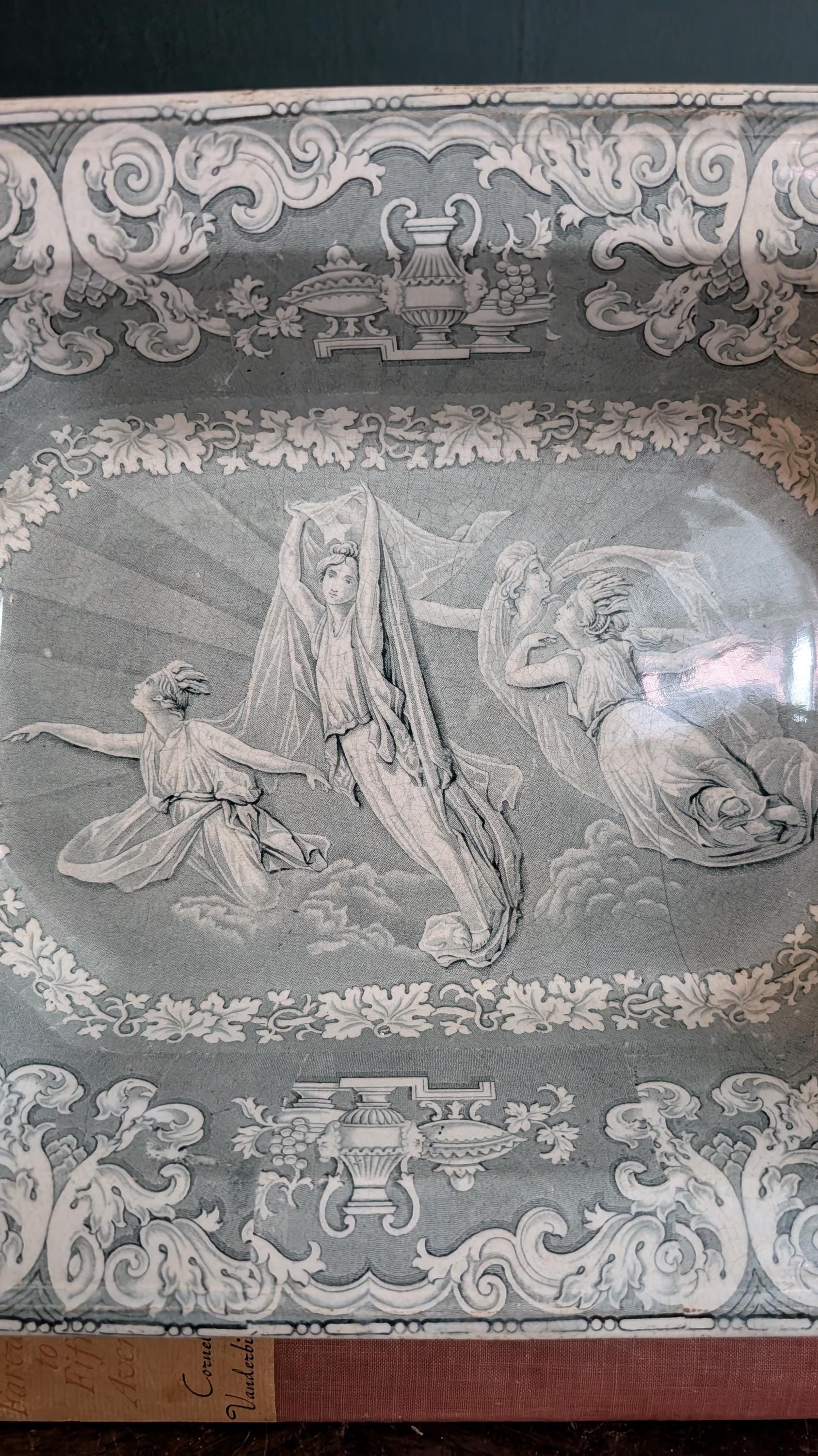 Condition: Plateau : Rare J Clemenston Classical Antiquities Transferware in rare grey colour. Fantastic classical Greek scene depicting “The Morning” Circa 1849. This piece is marked on the bottom.