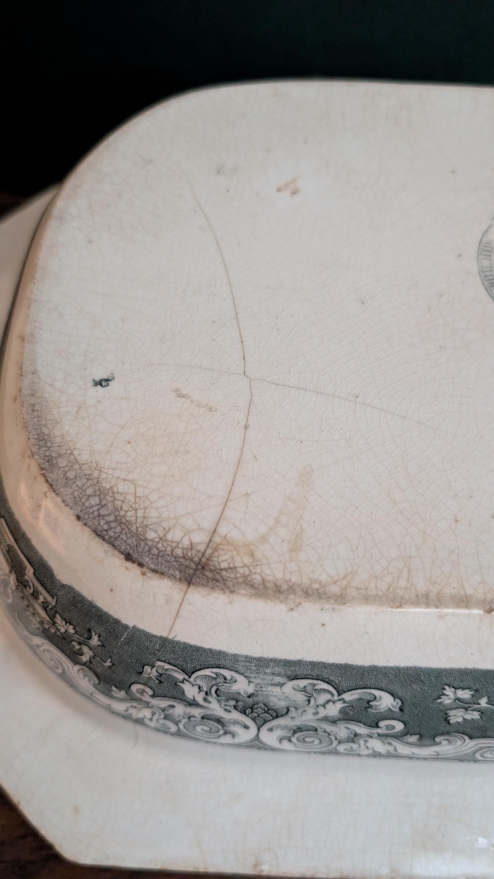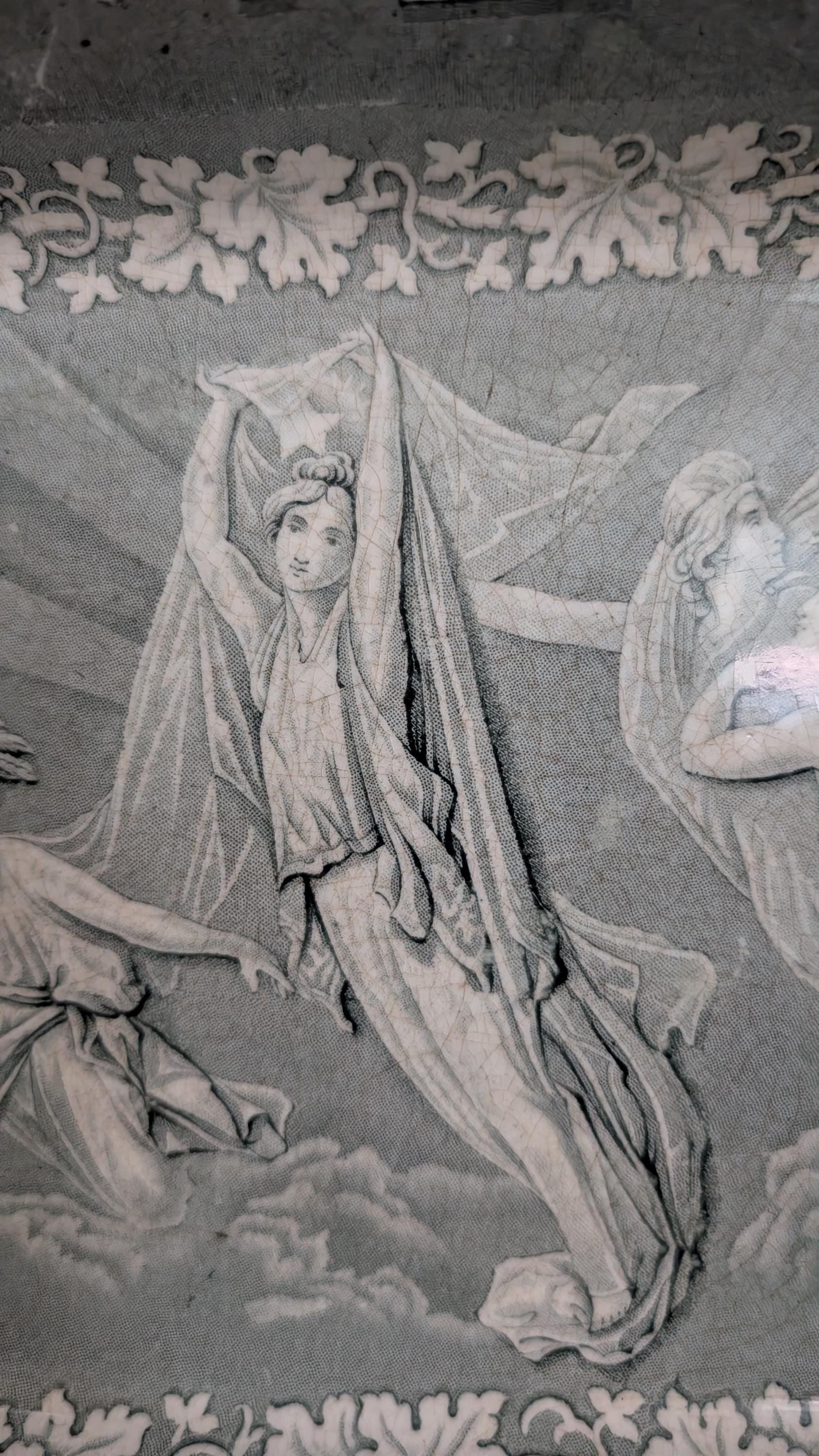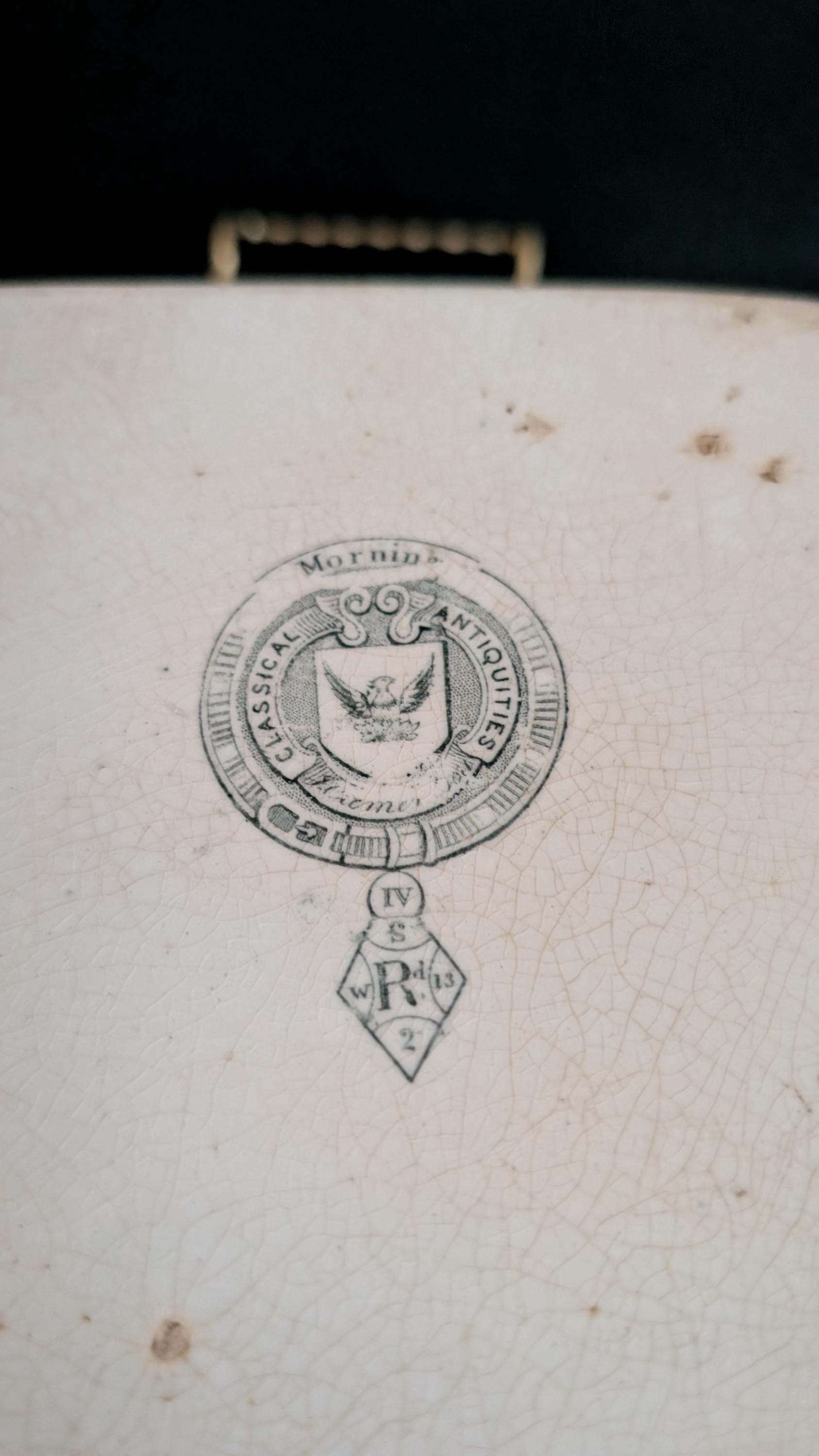 Condition: Plateau : Rare J Clemenston Classical Antiquities Transferware in rare grey colour. Fantastic classical Greek scene depicting “The Morning” Circa 1849. This piece is marked on the bottom.