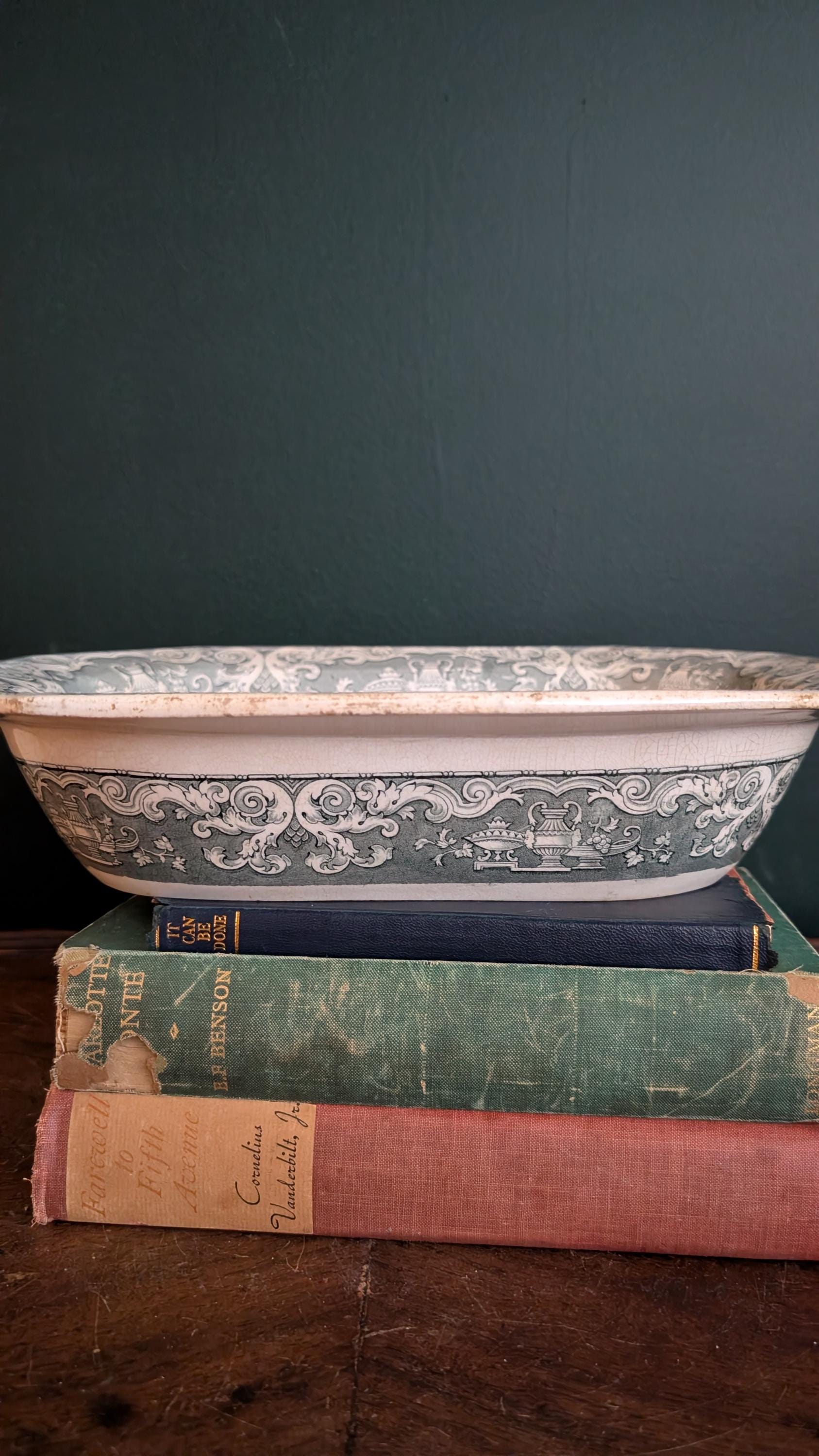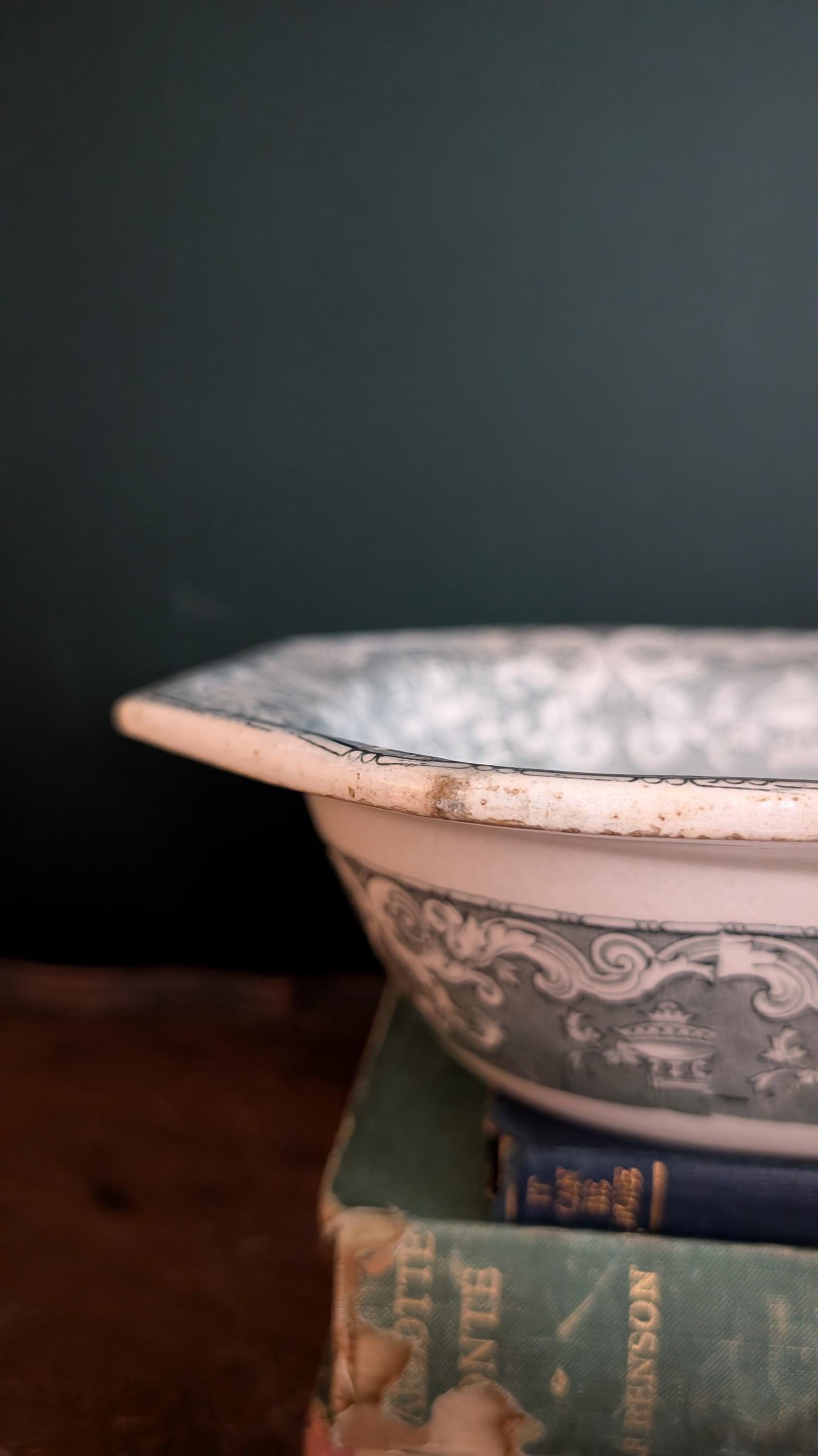 Rare Victorian J Clemenston Classical Antiquities Grey Transferware Deep Bowl