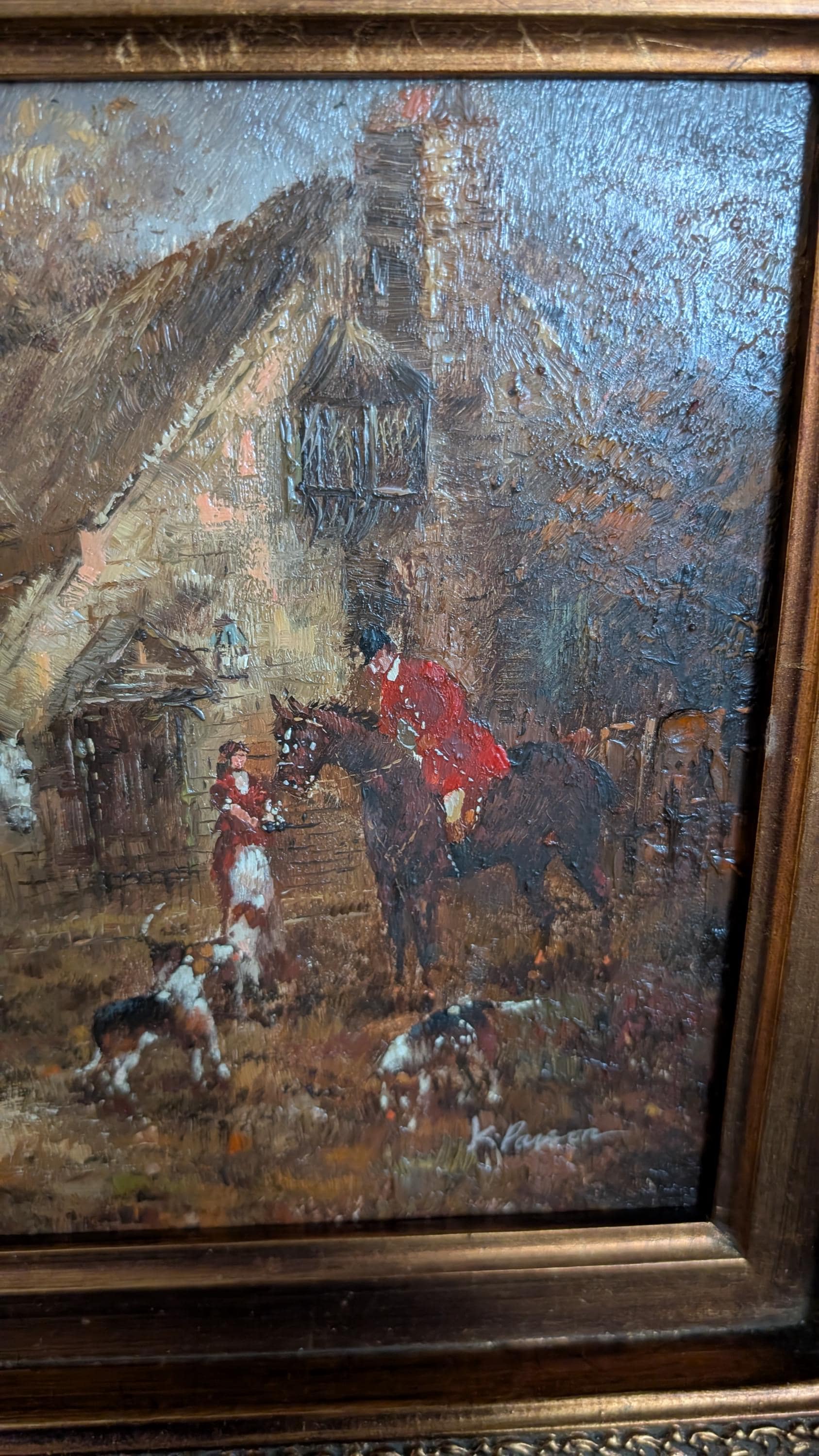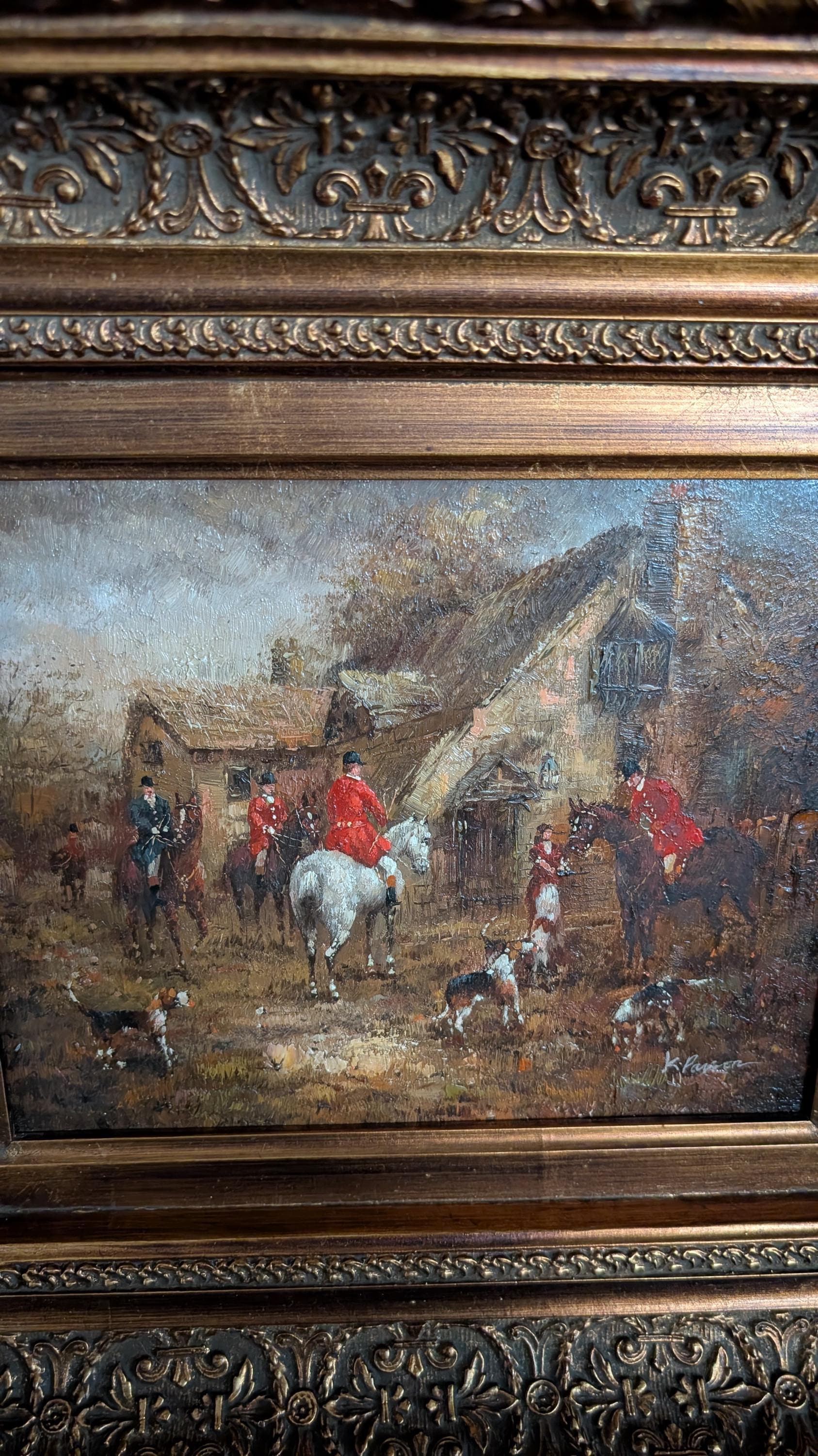 Condition & Description: Beautiful signed oil on board in its frame depicting a chasse à courre scene with a rider and his hounds. The perfect addition to your Equestrian decor and old English country house.