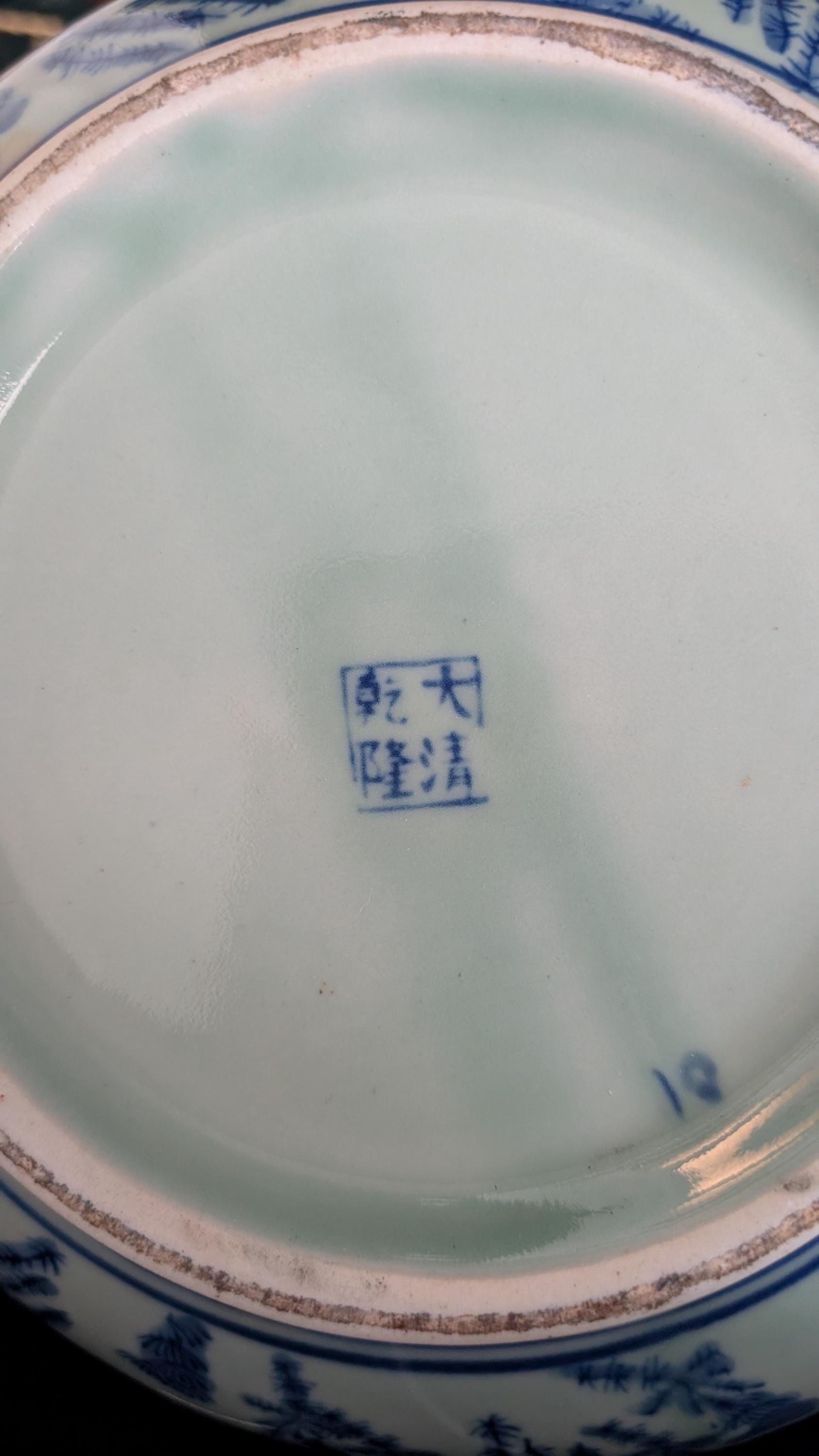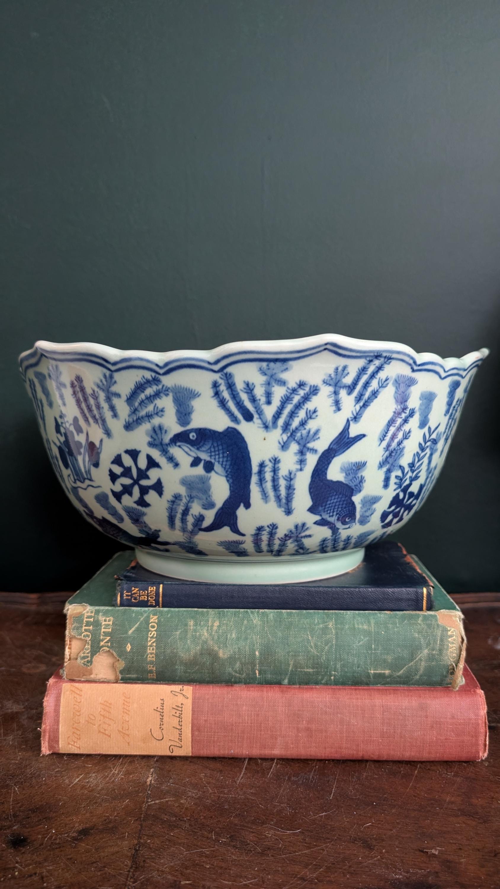Antique Chinese Qinglong Dynasty style Large Porcelain signed Bowl with Koi Fish